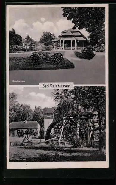 AK Bad Salzhausen, Gradierbau, Wasserrad