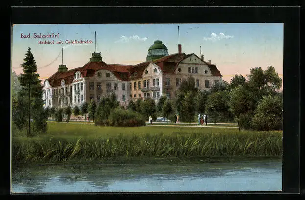 AK Bad Salzschlirf, Badehof mit Goldfischteich