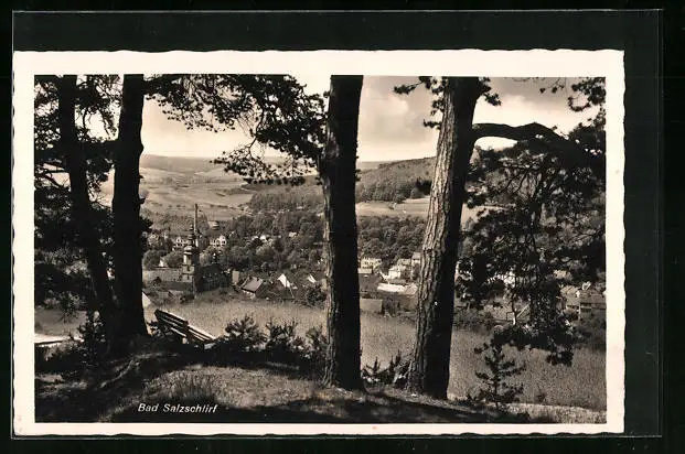 AK Bad Salzschlirf, Teilansicht mit Bäumen
