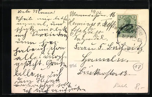 alte Ansichtskarte, gelaufen, rückseitig Klebe- und Papierreste, guter Zustand