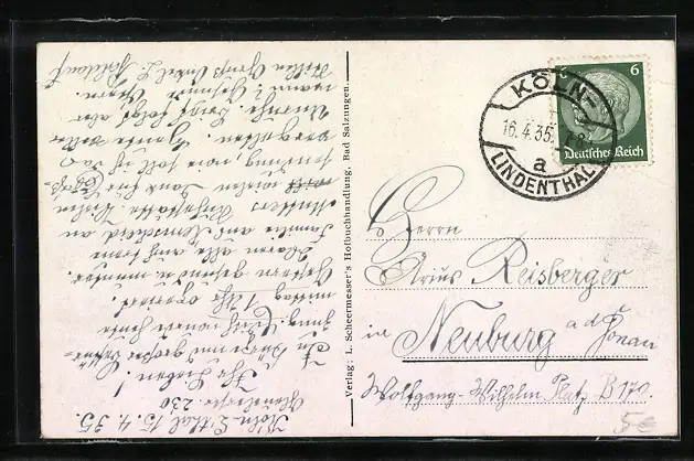 gelaufen 1935, Eckknick li. oben, Bugspuren li. oben, guter Zustand