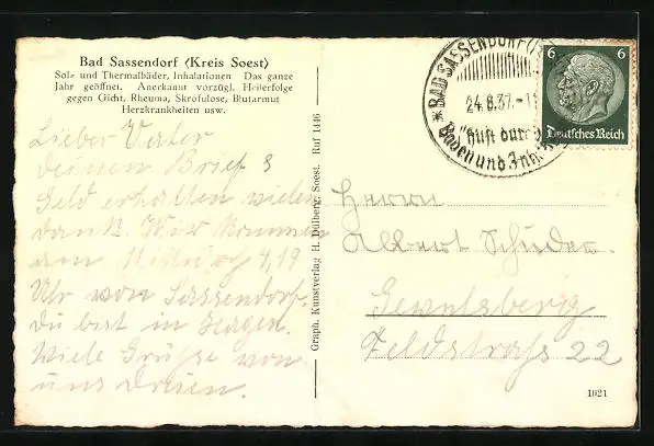 alte Ansichtskarte, gelaufen 1937, guter Zustand