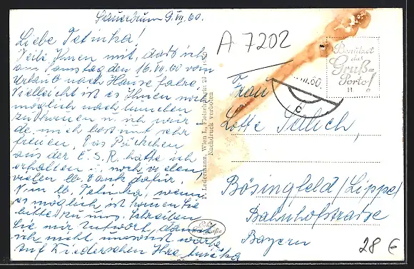 alte Ansichtskarte, gelaufen 1960, Briefmarke entfernt, guter Zustand
