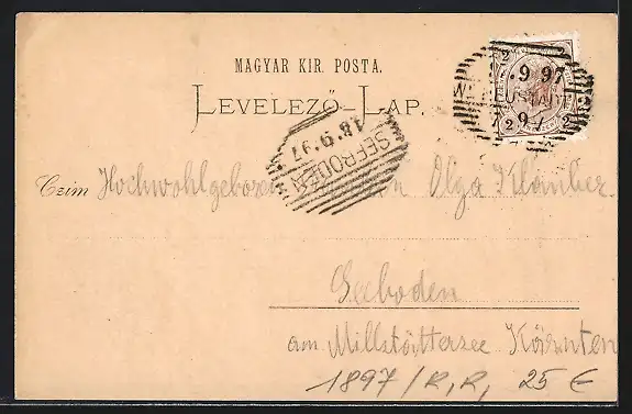 gelaufen 1897, Eckknick rechts oben, guter Zustand