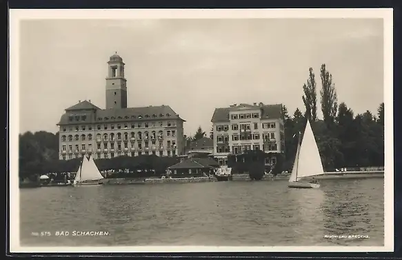 AK Bad Schachen, Ortsansicht vom Bodensee aus