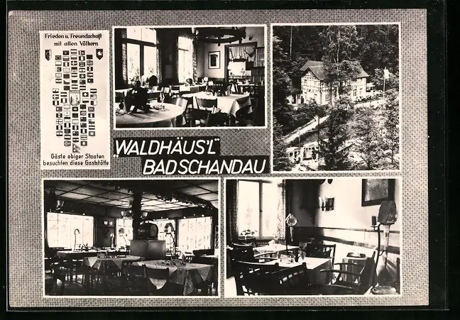 AK Bad Schandau, Vier Ansichten aus dem Gasthaus Waldhäus`l