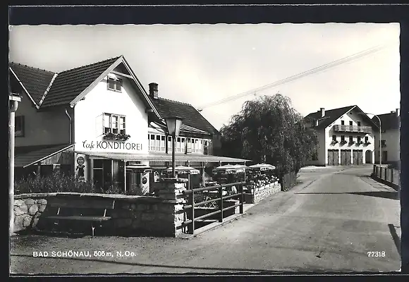 AK Bad Schönau, Strassenpartie mit Cafe Konditorei