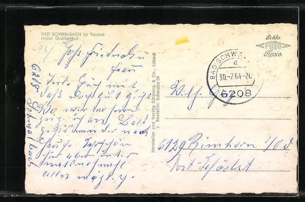 alte Ansichtskarte, gelaufen 1964, Briefmarke entfernt, guter Zustand