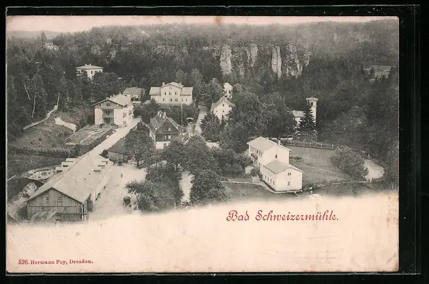 AK Bad Schweizermühle, Totalansicht aus der Vogelschau