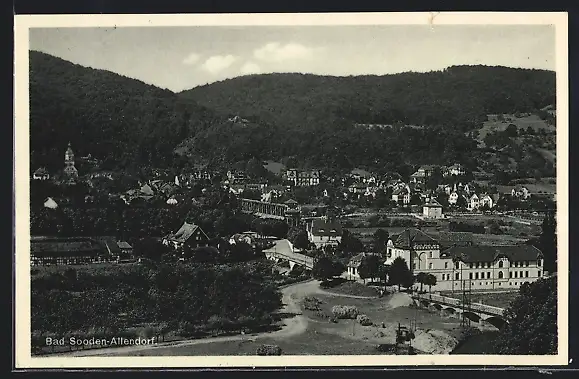 AK Bad Sooden-Allendorf, Ortsansicht mit Brücke aus der Vogelschau