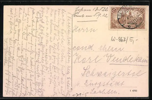 alte Ansichtskarte, gelaufen 1922, Eckknick re. oben, guter Zustand