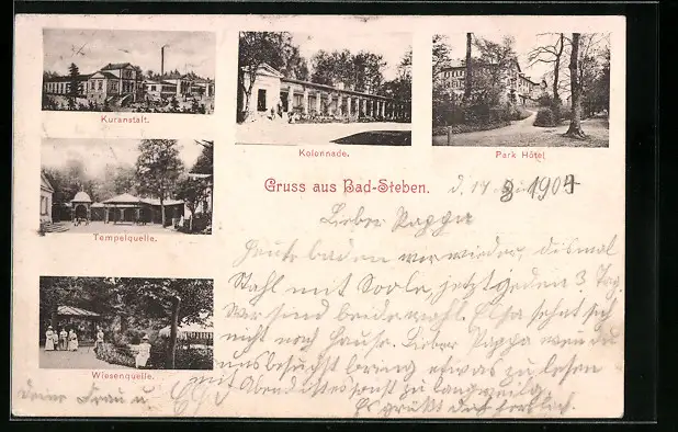 AK Bad Steben, Kolonnade, Kuranstalt und Tempelquelle