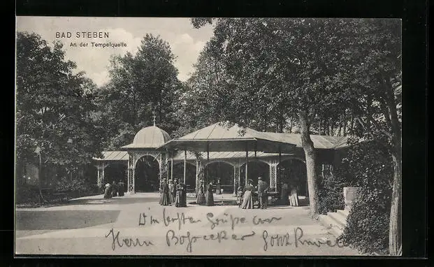AK Bad Steben, Kurgäste an der Tempelquelle