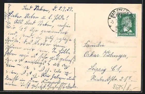 alte Ansichtskarte, gelaufen 1927, guter Zustand