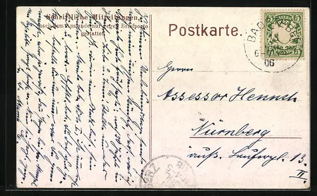 alte Ansichtskarte, gelaufen 1906, guter Zustand