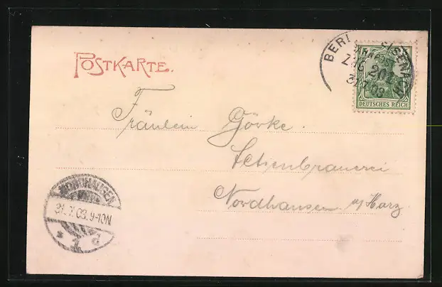alte Ansichtskarte, gelaufen 1903, Stecknadelloch li. oben, guter Zustand