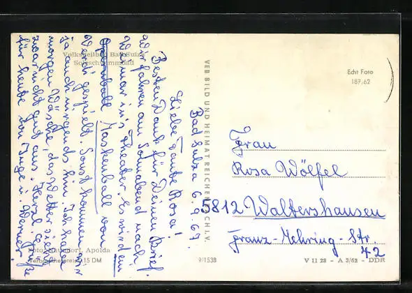 alte Ansichtskarte, gelaufen 1967, Briefmarke entfernt, guter Zustand