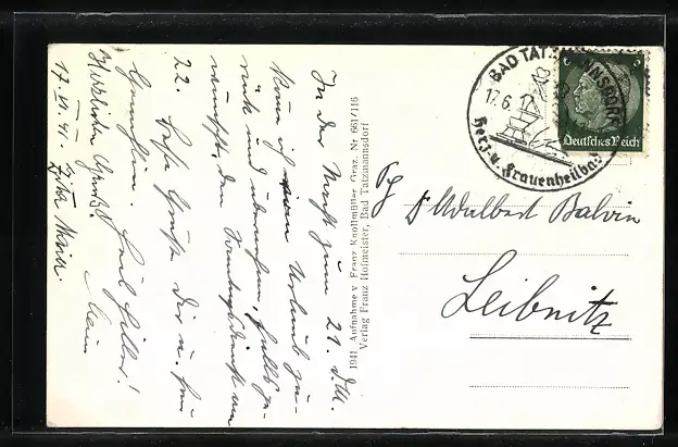 alte Ansichtskarte, gelaufen 1941, guter Zustand