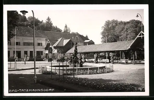 AK Bad Tatzmannsdorf, Ortspartie mit Springbrunnen