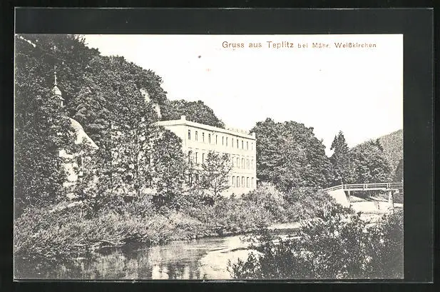 AK Bad Teplitz, Gebäudepartie am Fluss