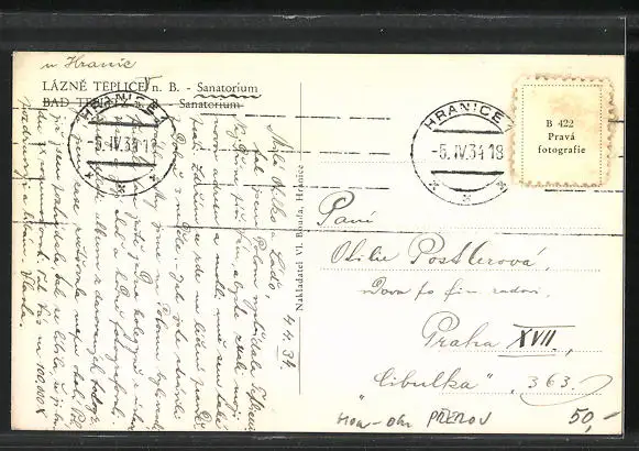 AK Bad Teplitz a. B., Blick zum Sanatorium