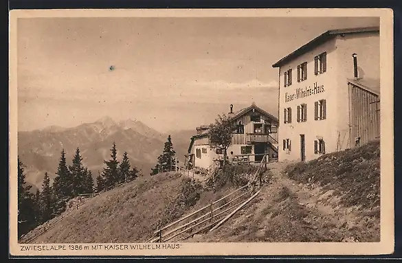 AK Bad Tölz, Bergasthof Zwieselalpe, Blick auf Kaiser Wilhelm Haus