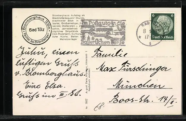 AK Bad Tölz, Gasthof Blomberghaus, Gebirgspanorama