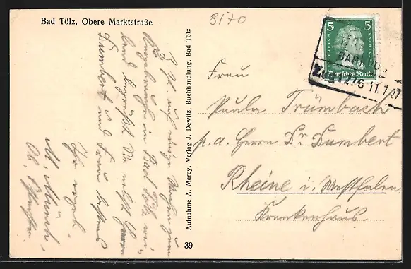 alte Ansichtskarte, gelaufen 1927, guter Zustand