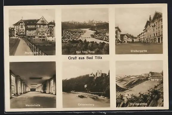 AK Bad Tölz, Isarbrücke, Strassenpartie und WAndelhalle
