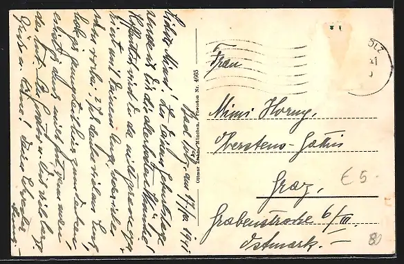 alte Ansichtskarte, gelaufen 1941, Briefmarke entfernt, rückseitig Oberflächenschaden, guter Zustand