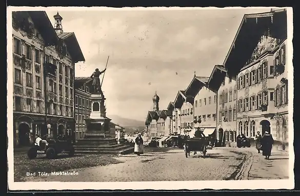 AK Bad Tölz, Marktstrasse mit Geschäften und Denkmal