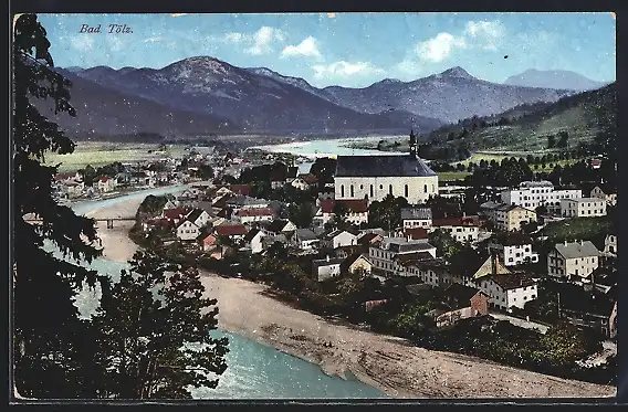 AK Bad Tölz, Ortsansicht mit Flusspartie