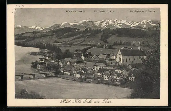 AK Bad Tölz, Ortsansicht mit Isar und Gebirgen