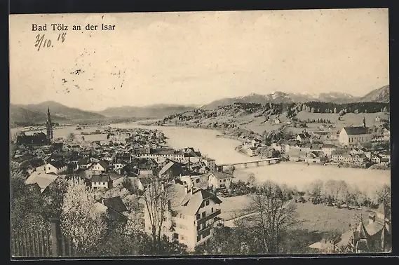 AK Bad Tölz, Panorama mit Isarpartie