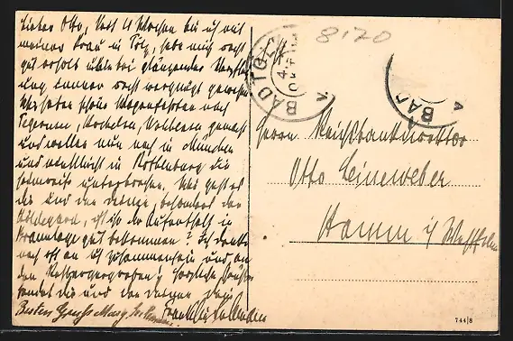 alte Ansichtskarte, gelaufen 1918, Briefmarke entfernt, Stempelspur, guter Zustand