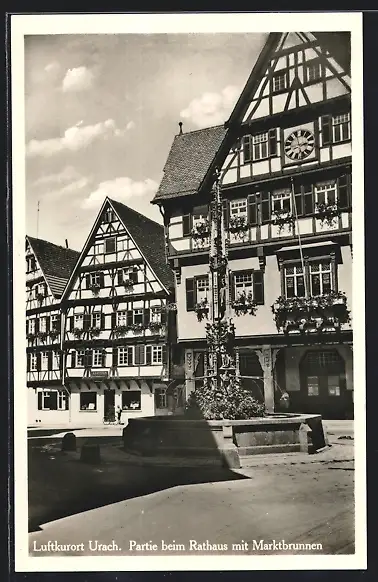 AK Bad Urach, Partie beim Rathaus mit Marktbrunnen
