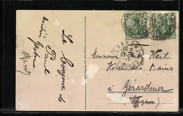 gelaufen 1910, Eckknick unten rechts, guter Zustand