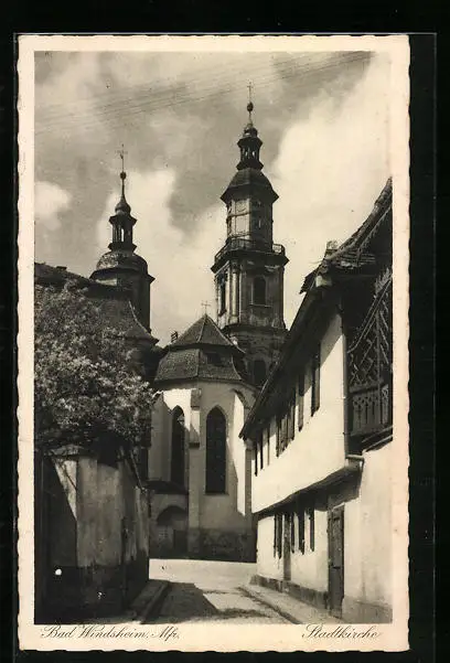 AK Bad Windsheim /Mfr., Strassenpartie mit Stadtkirche