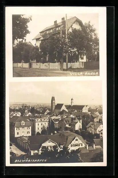 AK Bad Wörishofen, Totalansicht aus der Vogelschau, Villa Paula
