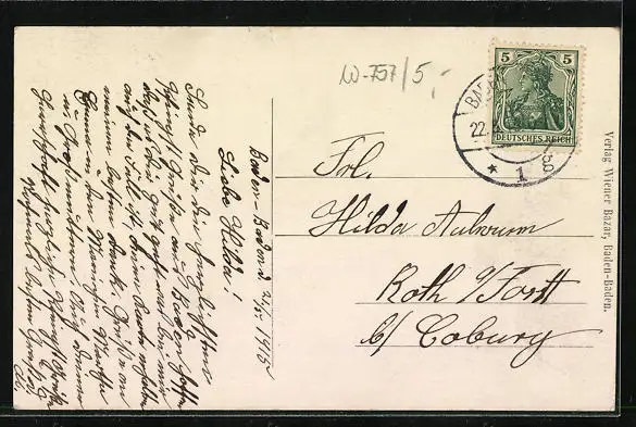 gelaufen 1915, kleiner Einriss oben mittig, guter Zustand