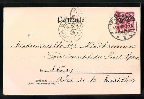 alte Ansichtskarte, gelaufen 1898, Eckknick oben li., guter Zustand
