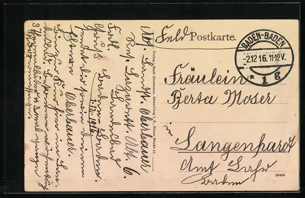 alte Ansichtskarte, gelaufen 1916, Abriebspuren Kante li., guter Zustand