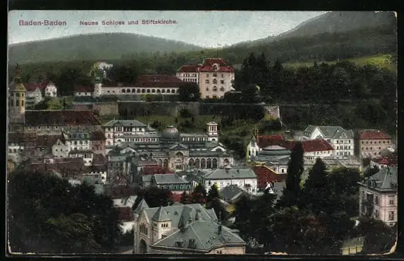 AK Baden-Baden, Neues Schloss und Stiftskirche