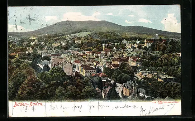 AK Baden-Baden, Ortsansicht aus der Vogelschau