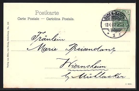 alte Ansichtskarte, gelaufen 1903, Stempelspur, guter Zustand