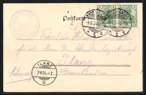 gelaufen 1904, Eckknick unten re., Stempelspur, guter Zustand