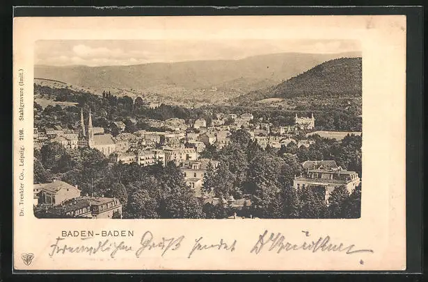 AK Baden-Baden, Panoramablick aus der Vogelschau