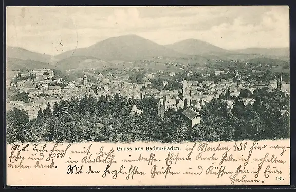 AK Baden-Baden, Stadtansicht aus der Vogelschau