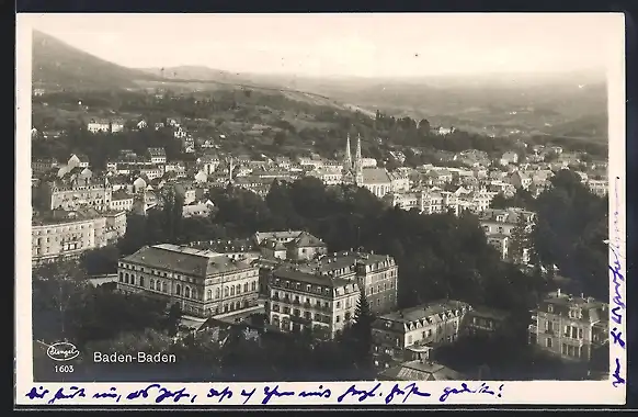 AK Baden-Baden, Stadtansicht von einer Anhöhe aus