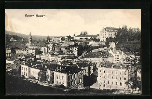 AK Baden-Baden, Teilansicht mit Kirche